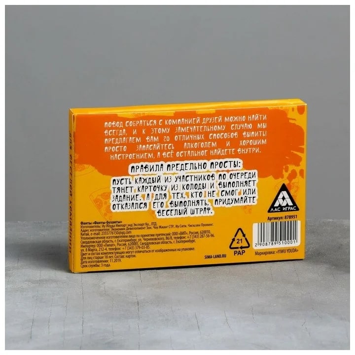 Купить игра для компании "фанты буханты" 20 карт от 100 руб. с доставкой до пункта выдачи в Сольцах. Интернет магазин ДекаМаркет. Оплата при получении.